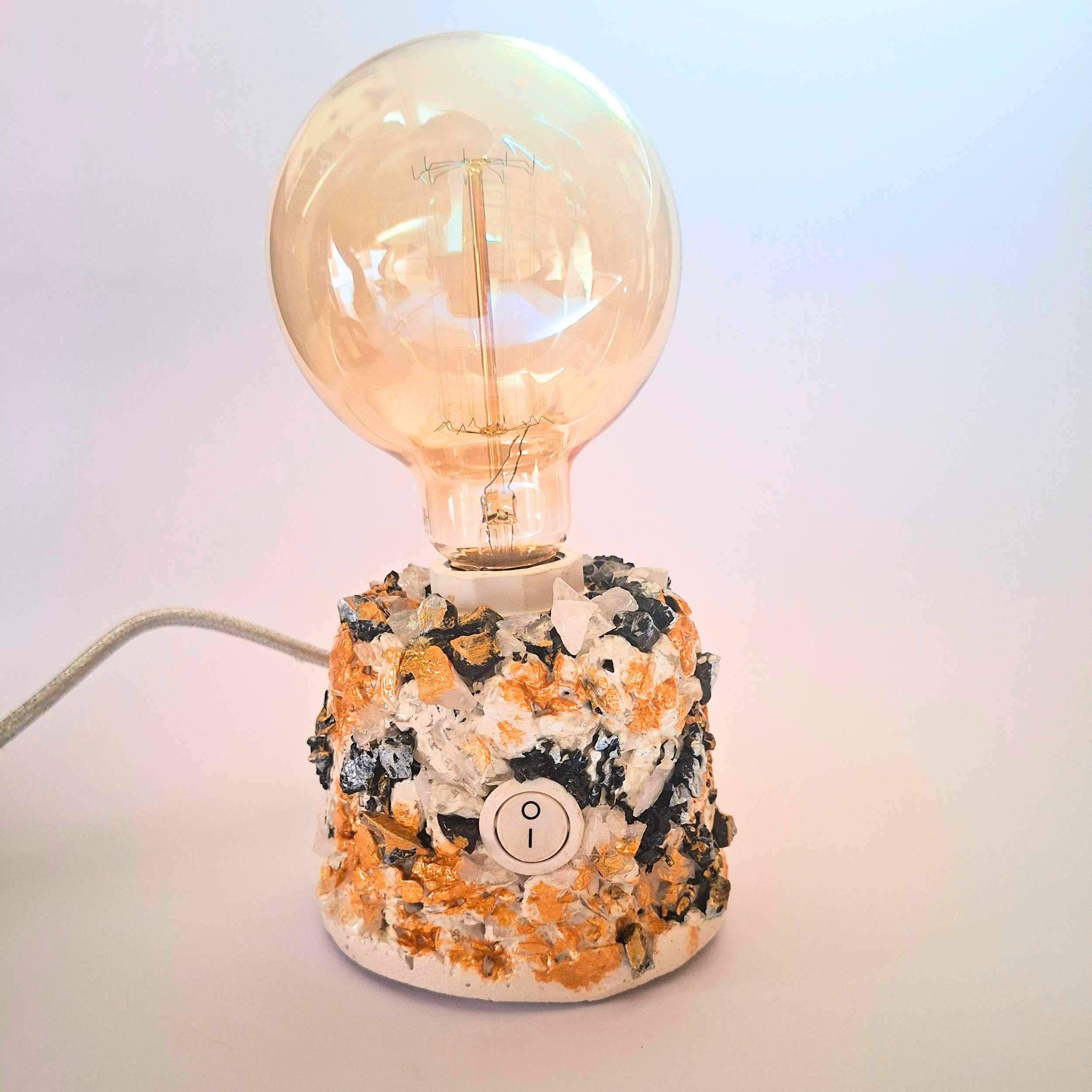 Luminária de mesa com design autoral e único com uma pegada vintage, feita de forma artesanal em concreto. Ideal para iluminar e decorar quartos, sala de estudo, sala de estar, home office e muito mais.