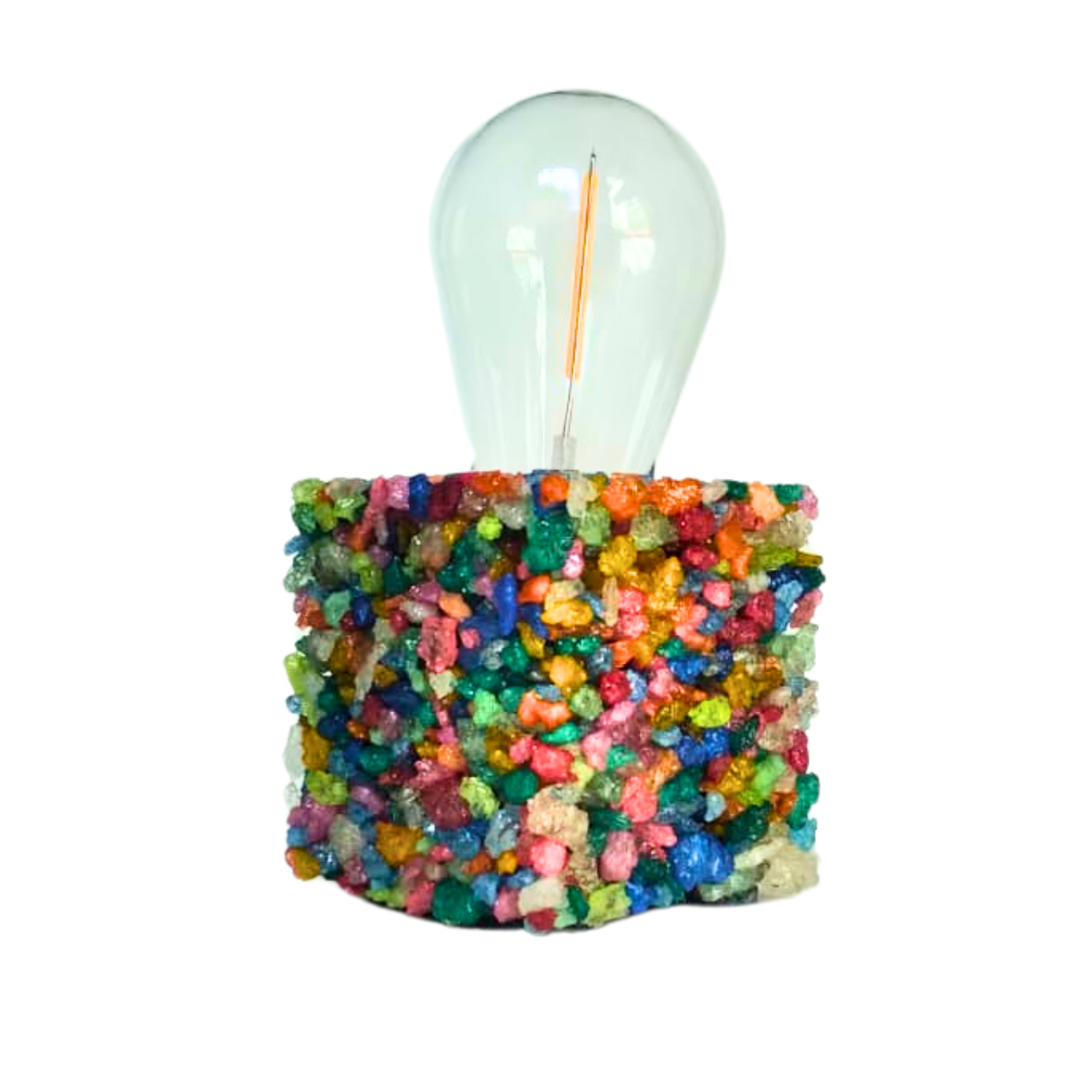 A Lumini Confete² é mais do que uma fonte de luz é um pedacinho de festa que cabe na sua mesa, estante ou no seu cantinho favorito. O toque de cor que faltava na sua decoração. Feita à mão com uma base vibrante, texturizada e cheia de personalidade, ela celebra a beleza do imperfeito, do criativo, do que é feito com alma.
